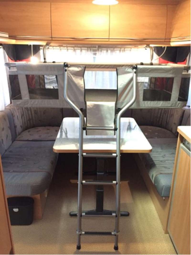 Meet de afstand op van de wand waarop de U beugel gemonteerd wordt tot aan de plek waar de trap uiterlijk nog mag komen te staan. Is deze afstand 140 cm of langer, dan past het bed en vormt de trap geen belemmering. De trap maakt aan de onderzijde een rechte knik naar beneden zodat in de meeste gevallen de koelkastdeur en of de toiletdeur gewoon open kunnen.