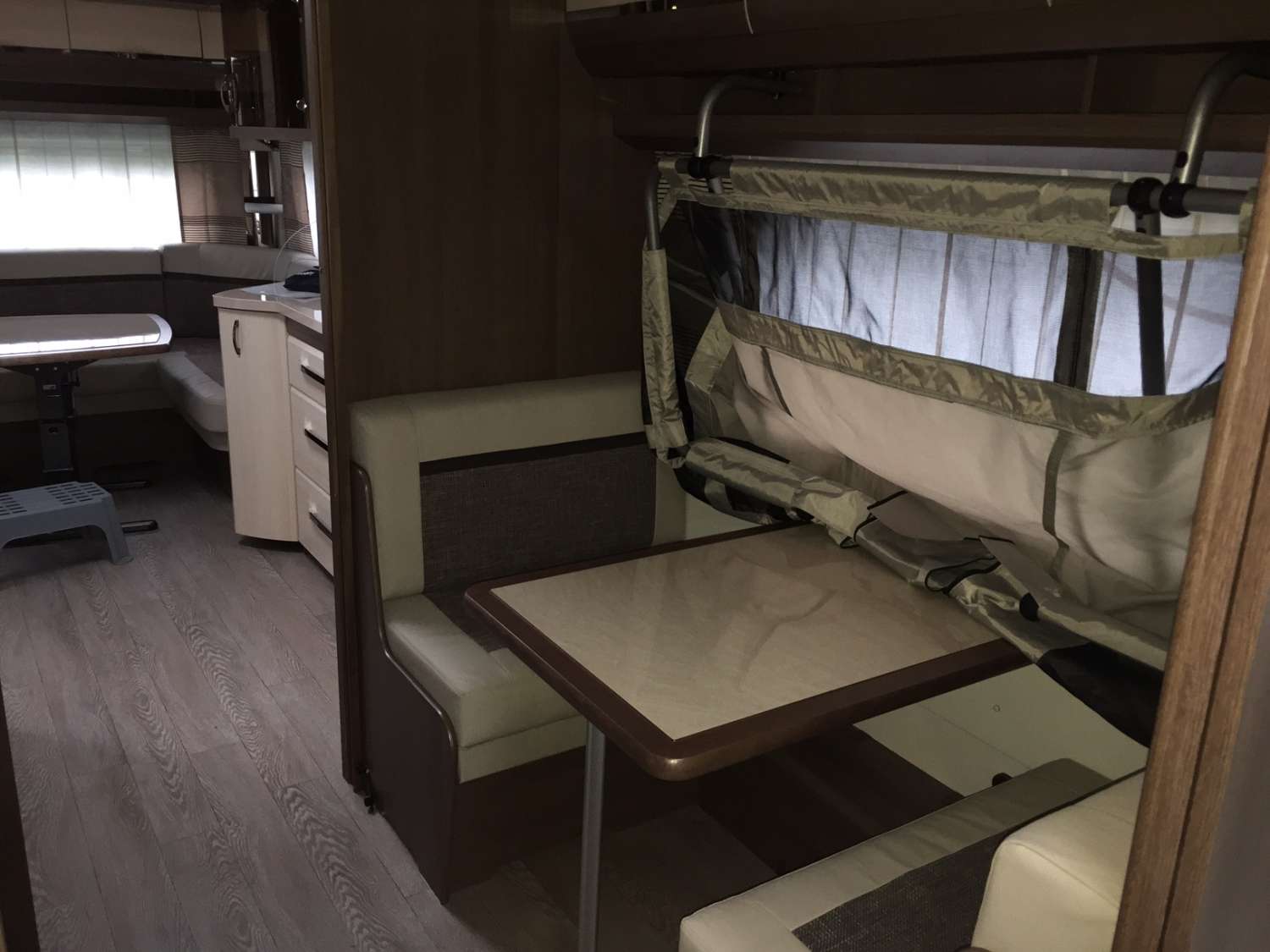 Ondanks de grootte van deze caravan was er toch een wens voor een extra slaapplaats. Het UWIS caravanbed maakt dit mogelijk.